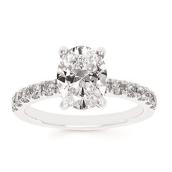 Classic Bridal: 3/8Ctw. Diamond Mounting With 2Ct. Lab Grown Oval Center Diamond In 14K Gold