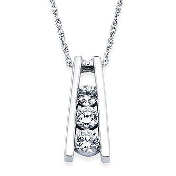1/3 Ctw. 3 Stone Diamond Ladder Pendant In 14K Gold With 18" Chain